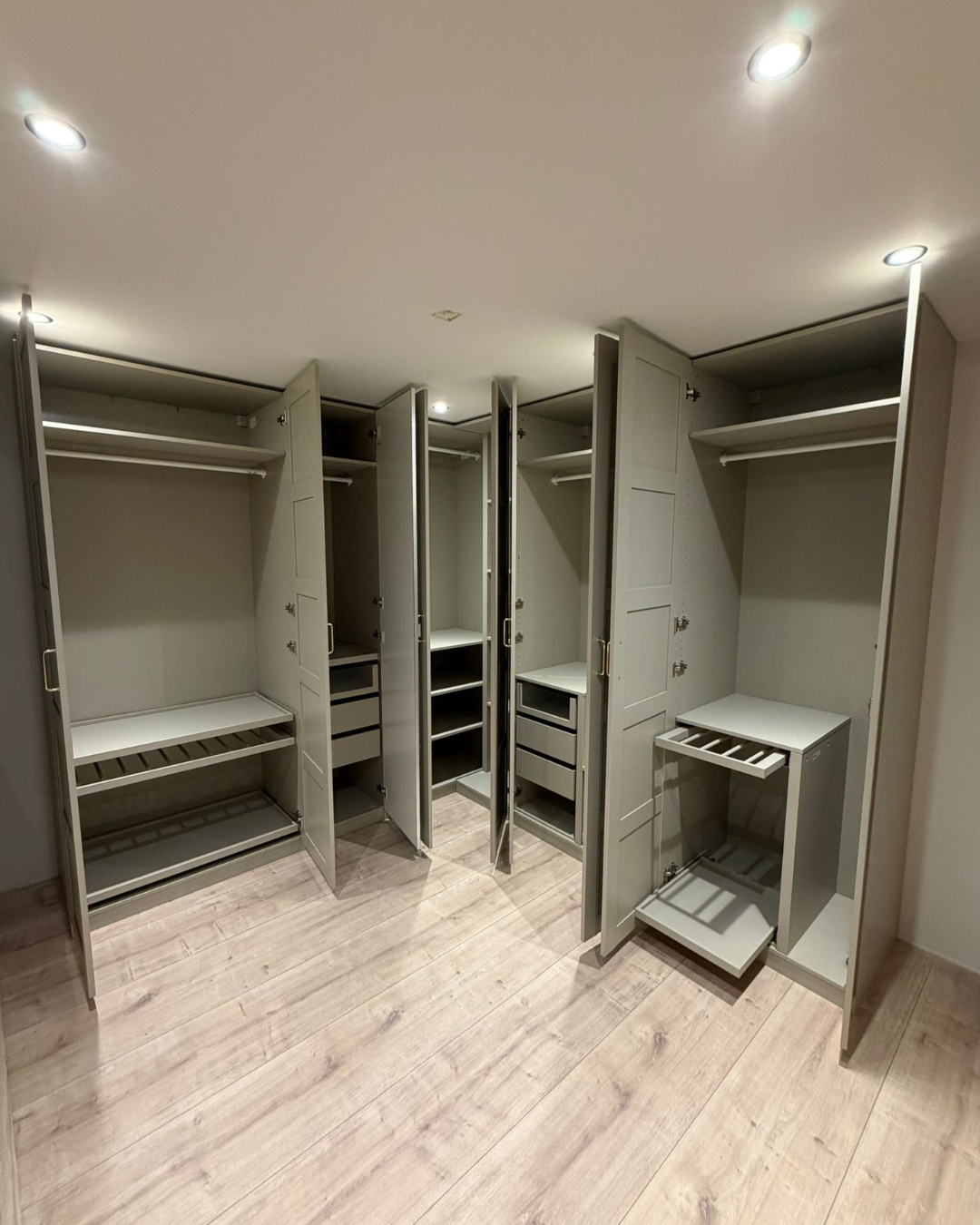 Door die ervaring weet ik precies hoe kasten op de juiste manier gemonteerd moeten worden. Van kledingkasten en IKEA PAX opstellingen tot complete opbergsystemen: ik zorg ervoor dat alles stevig, netjes en nauwkeurig geplaatst wordt.